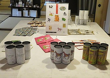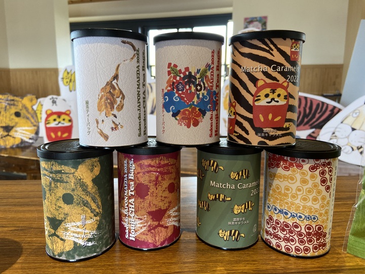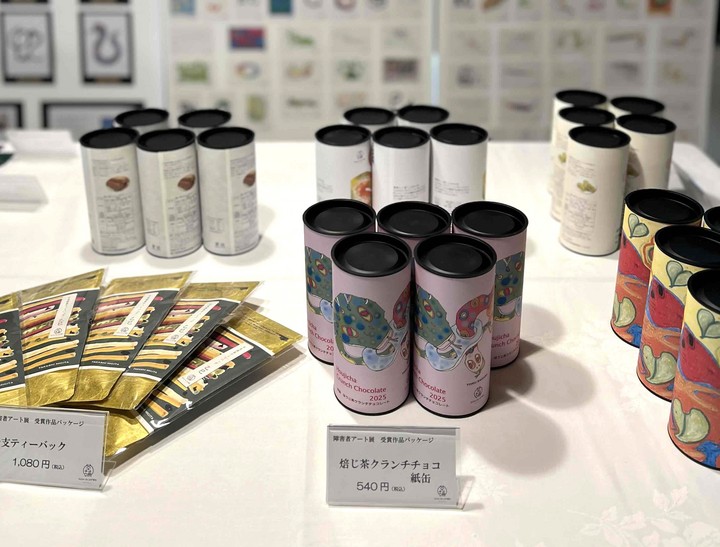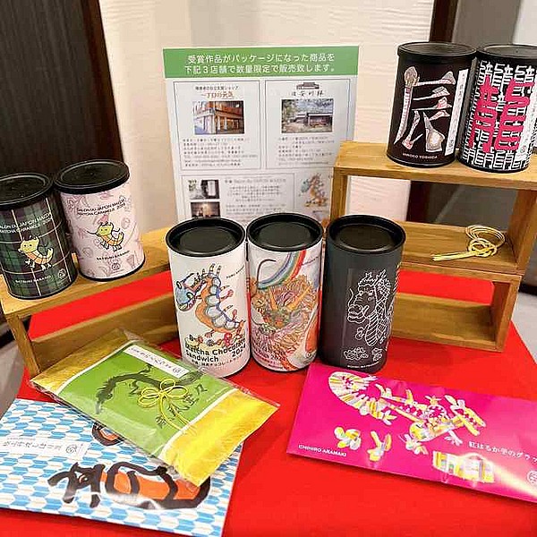受賞作品がお茶やお菓子等のバッケージになった商品をで販売。