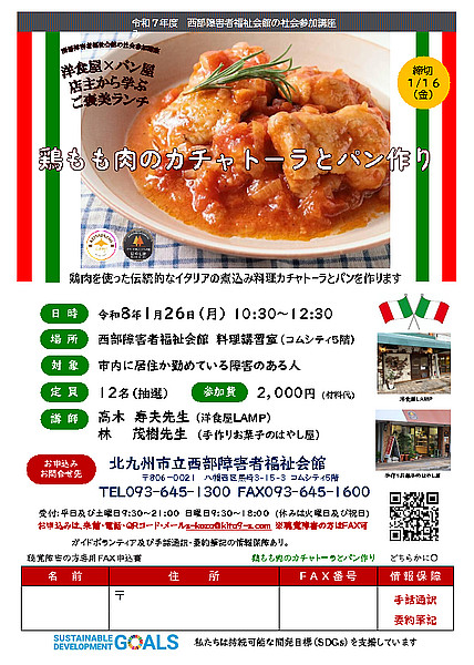 講座案内チラシ「ご褒美ランチ!「鶏もも肉のカチャトーラとパン作り」」 (646 K)